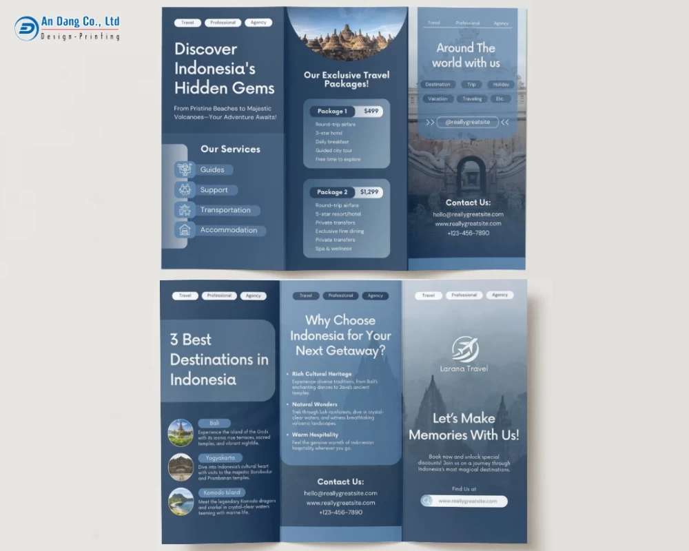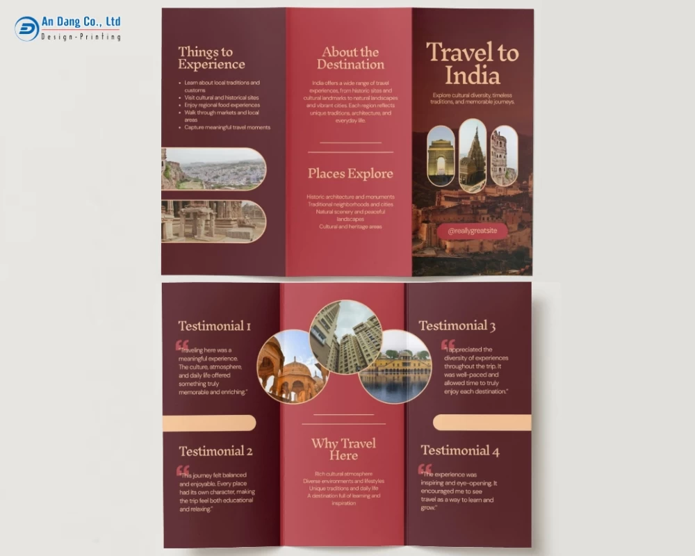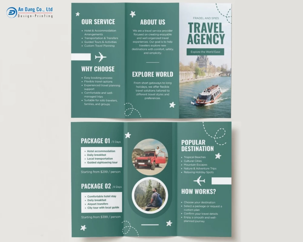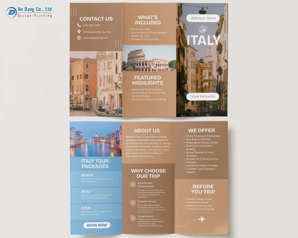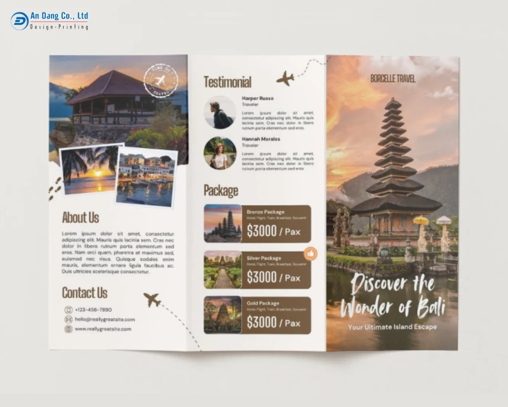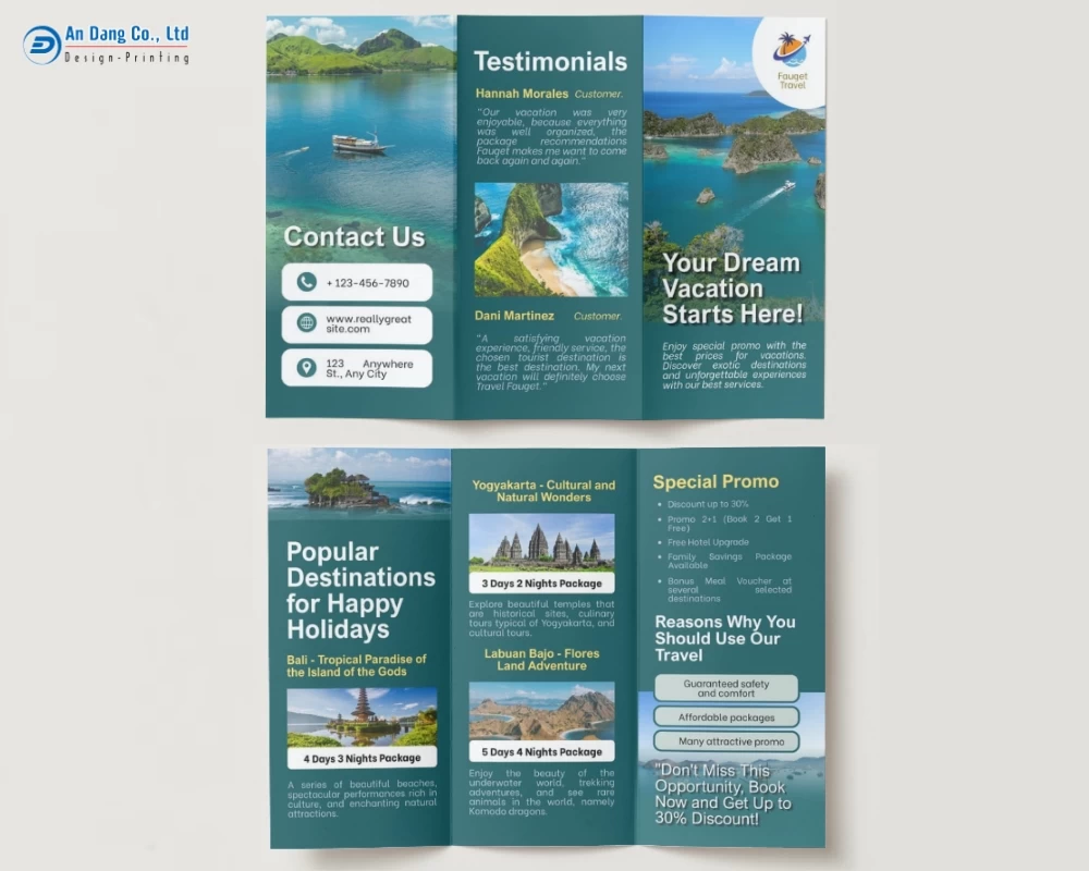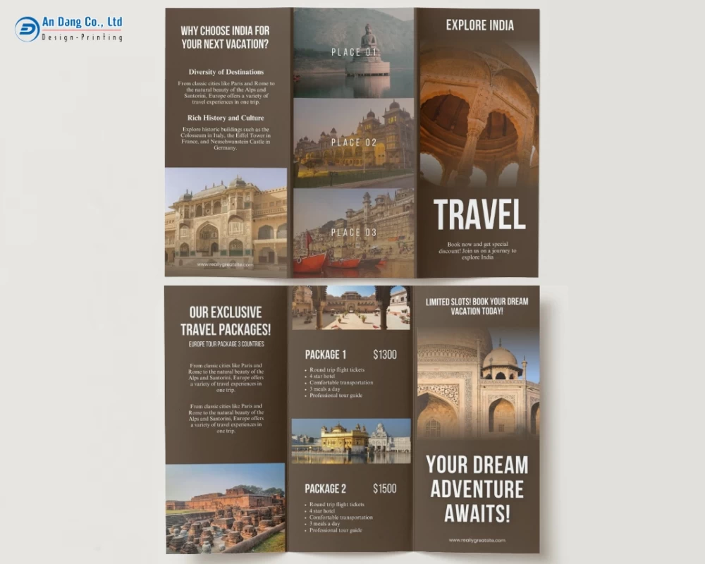 Dưới đây, mời bạn khám phá 20+ mẫu brochure du lịch chuyên nghiệp, ấn tượng do Xưởng In An Đăng đã tổng hợp.