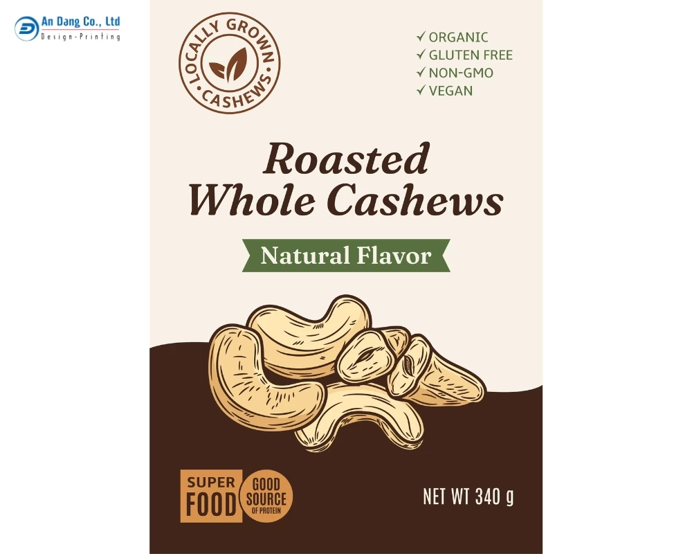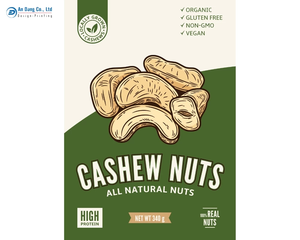 Dưới đây, In An Đăng có tổng hợp một số mẫu tem nhãn hạt điều chuyên nghiệp, cao cấp để bạn tham khảo thêm.