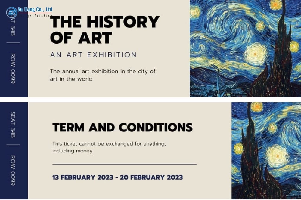 Kiểu dáng và kích thước vé sự kiện luôn được In An Đăng thiết kế và in ấn dựa theo yêu cầu của từng khách hàng đặt làm vé. Theo đó, các đơn vị tổ chức sự kiện sẽ chọn một kích thước vé mời phù hợp để chứa đủ các thông tin cần truyền tải.